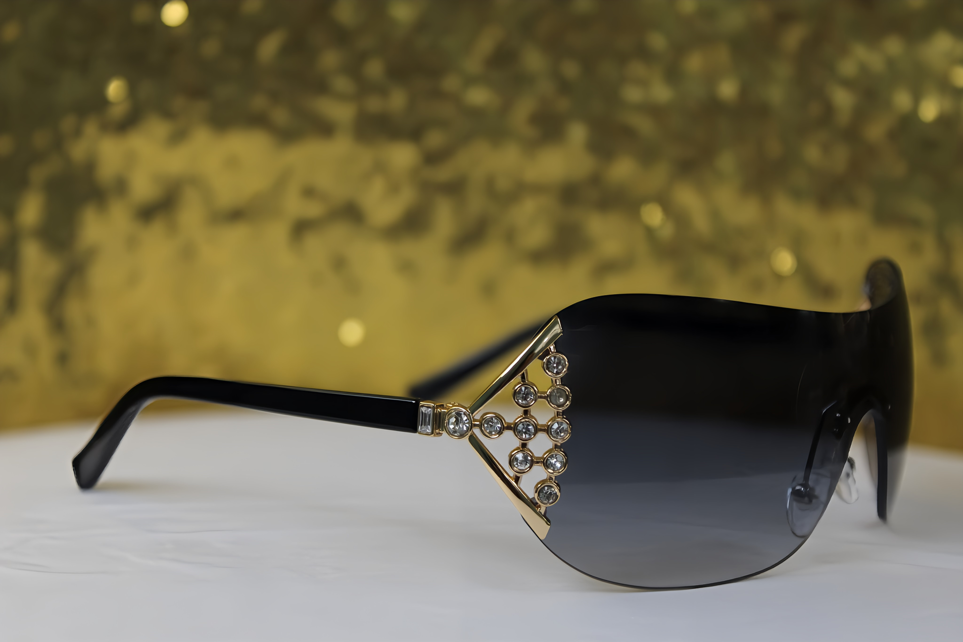 Eleva tu estilo con las exclusivas Gafas de Sol Negro Diamante diseñadas para quienes buscan destacar con elegancia y sofisticación. Estas gafas de sol cuentan con una lente ancha en color rosa degradado, perfecta para protegerte del sol y agregarle un toque de glamour a tu look. Los detalles dorados con adornos de cristales brillantes en los costados aportan un toque lujoso, convirtiendo cada par en una joya imprescindible. Combina funcionalidad y moda en un solo accesorio, ideal para cualquier ocasión donde el estilo lo sea todo.